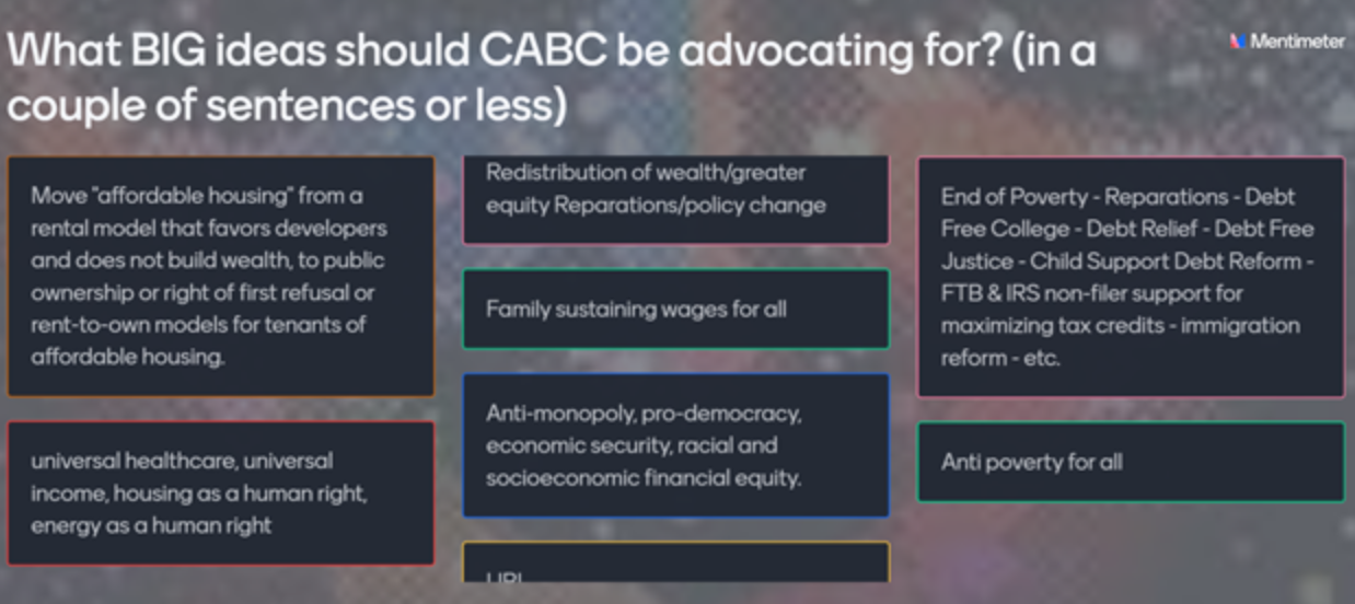 Across three deeply participatory research initiatives—a national equity insight survey, the California Asset Building Coalition (CABC) policy platform, and a qualitative equity assessment with a housing co-living organization (Open Door)—I served as the lead architect and facilitator of equity insight tools that bridged internal culture, public policy, and community priorities.